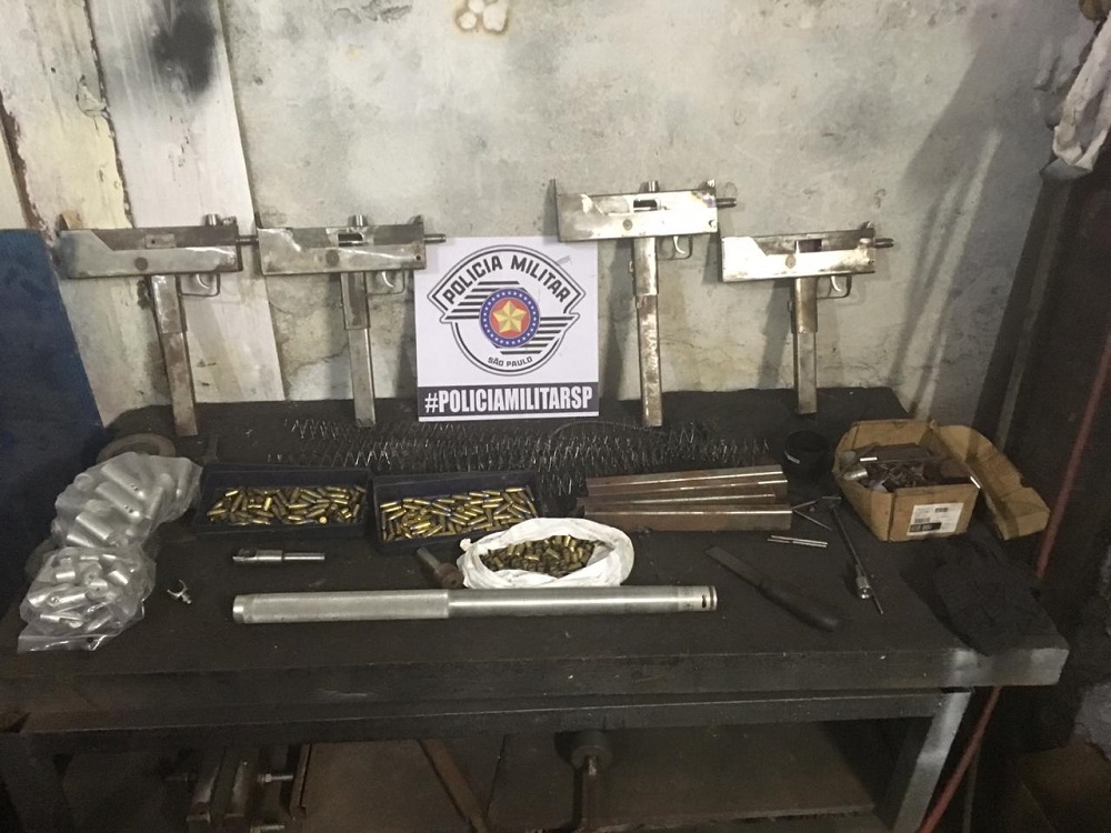 Conforme as buscas prosseguiam, os PMs acabaram achando quatro submetralhadoras 9 milímetros produzidas artesanalmente.