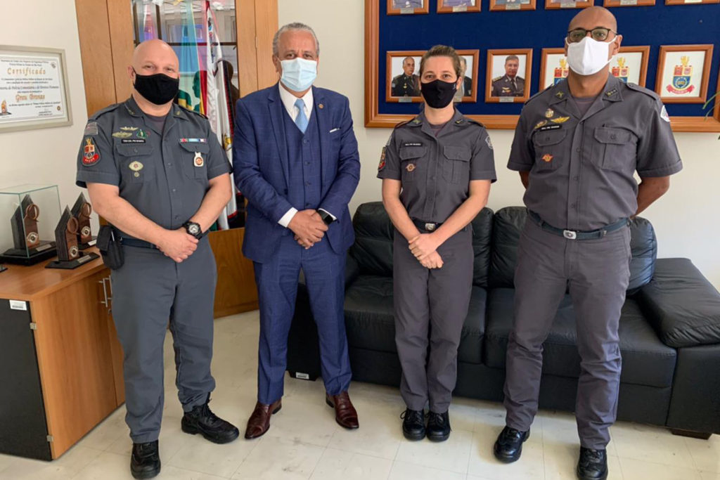 O deputado Tenente Nascimento (PSL) visitou nesta segunda-feira (3/5), a Diretoria de Polícia Comunitária e de Direitos Humanos (DPCDH) da Polícia Militar do Estado de São Paulo, coordenada pelo cel. Leandro Gomes. O parlamentar foi recebido pelo subdiretor ten. cel. Gomes, pela major Silmara e pelo major Ramos, que integram o núcleo de treinamento operacional responsável pelo treinamento e especialização de policiais militares que atuarão no Programa Patrulha Maria da Penha.