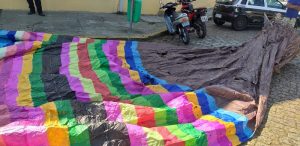 PMs ambientais realizavam patrulhamento pela rodovia Mogi-Salesópolis, quando avistaram um balão de grande dimensão em queda. A equipe passou a realizar buscas para localizá-lo, até que visualizaram grande movimentação de pessoas em uma propriedade e foram até o local.