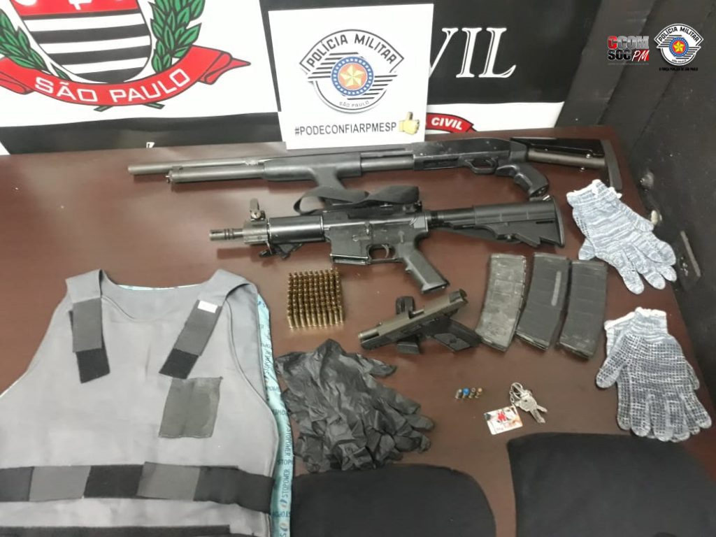 Estavam lá, um fuzil cal.556 com três carregadores e 90 munições, uma carabina calibre 12, uma pistola .40 e um colete balístico.